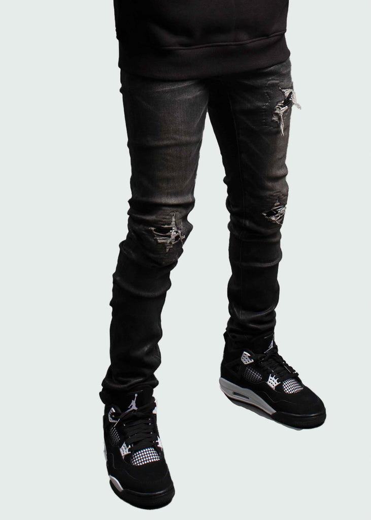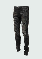 Black Biker Coated Denim