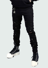 Black White Splash Two Hole Jeans